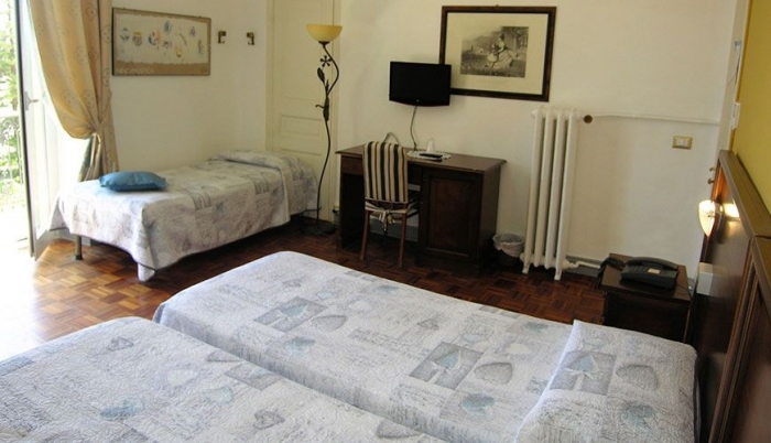 La Chambre Triple peut être composée d’un lit double pour 2 personnes ou de 3 lits simples et est très spacieuse, en effet elle mesure en moyenne 23 m².